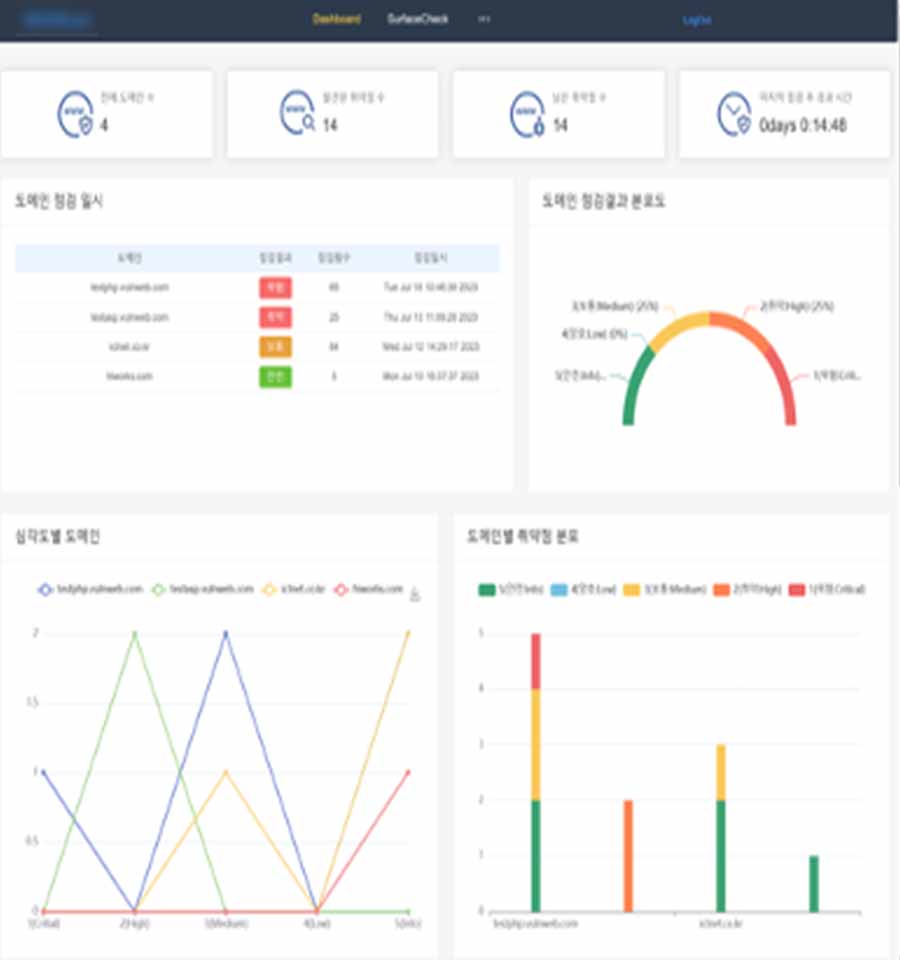 대시보드에서는 웹 서비스가 점검 중인 상태를 실시간으로 확인할 수 있으며, 이전의 점검 결과를 추적하여 보안의 변화를 모니터링할 수 있습니다. 이 기능은 웹사이트를 운영하는 모든 사람에게 필수적인 도구로, 웹사이트 보안의 상태를 정확하게 관리하고 유지하는 데 큰 도움이 됩니다.