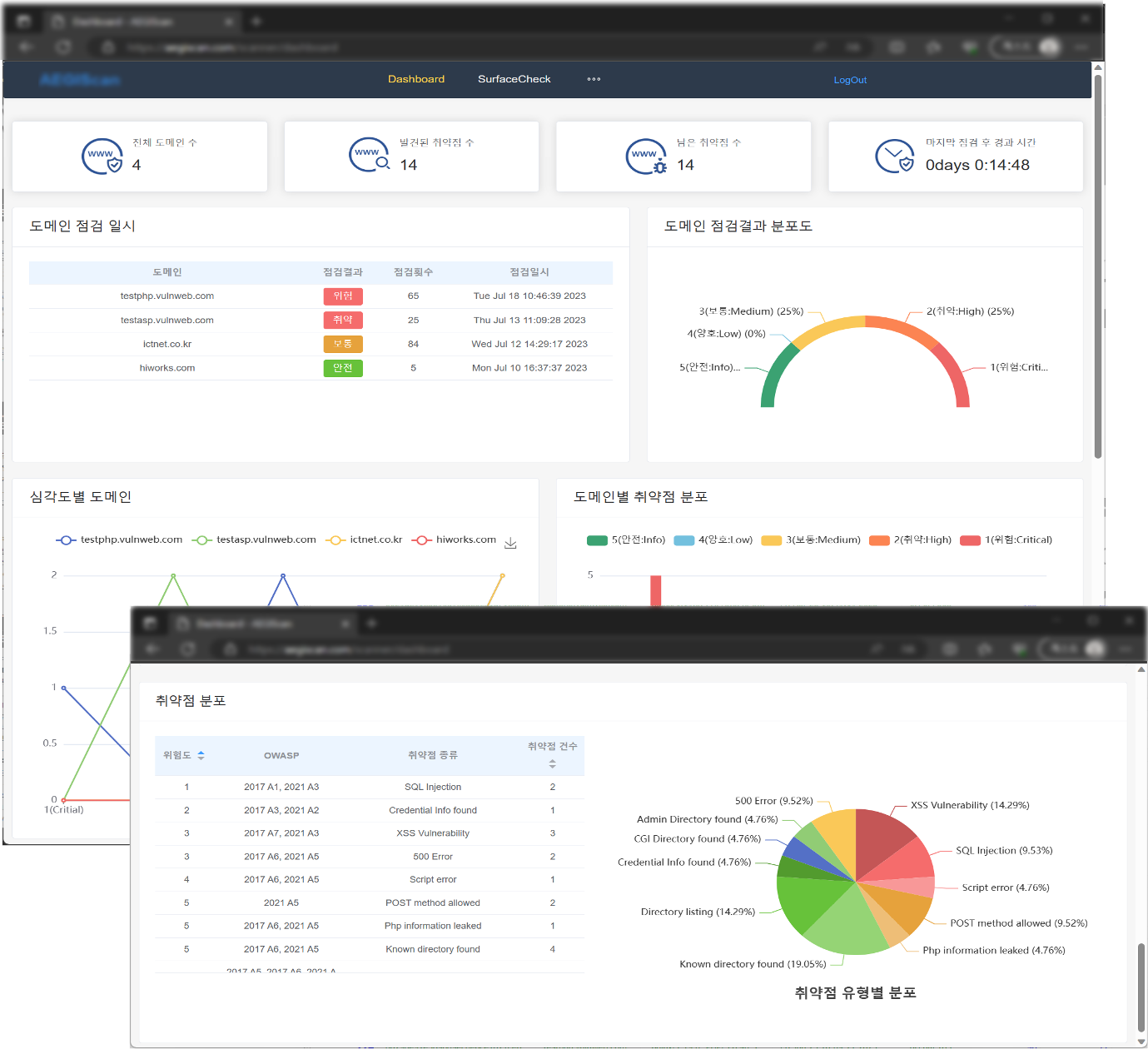 점검을 완료함과 동시에 Dashboard를 통한 관리와 결과 보고서를 확인